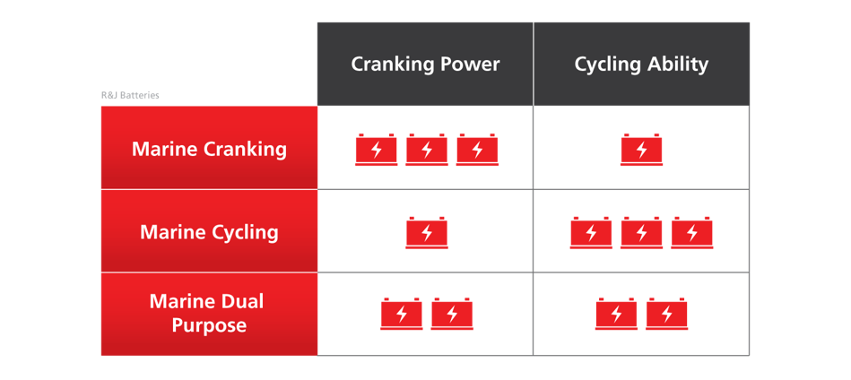 Marine Cranking, Deep Cycle and Dual Purpose Chart